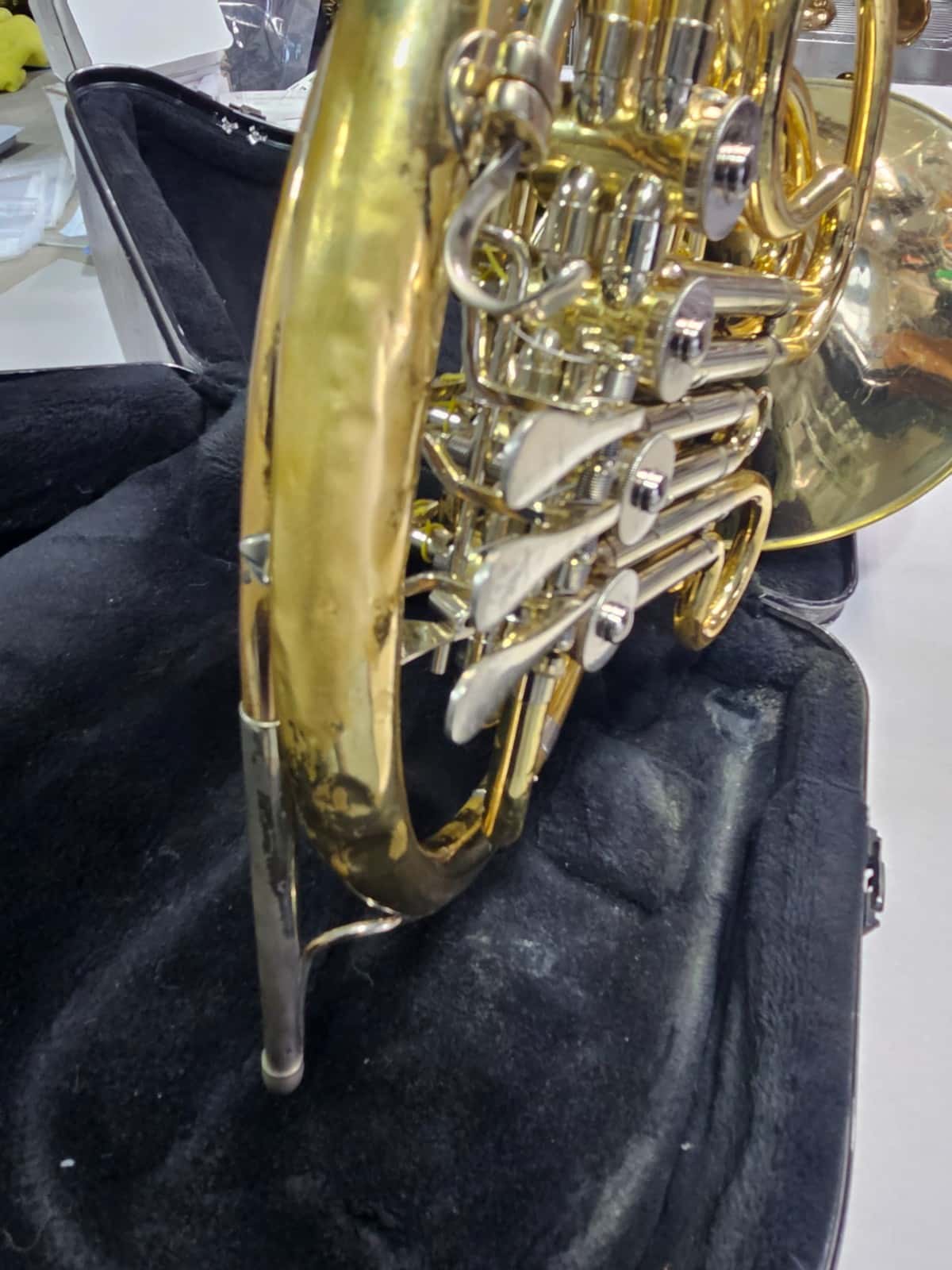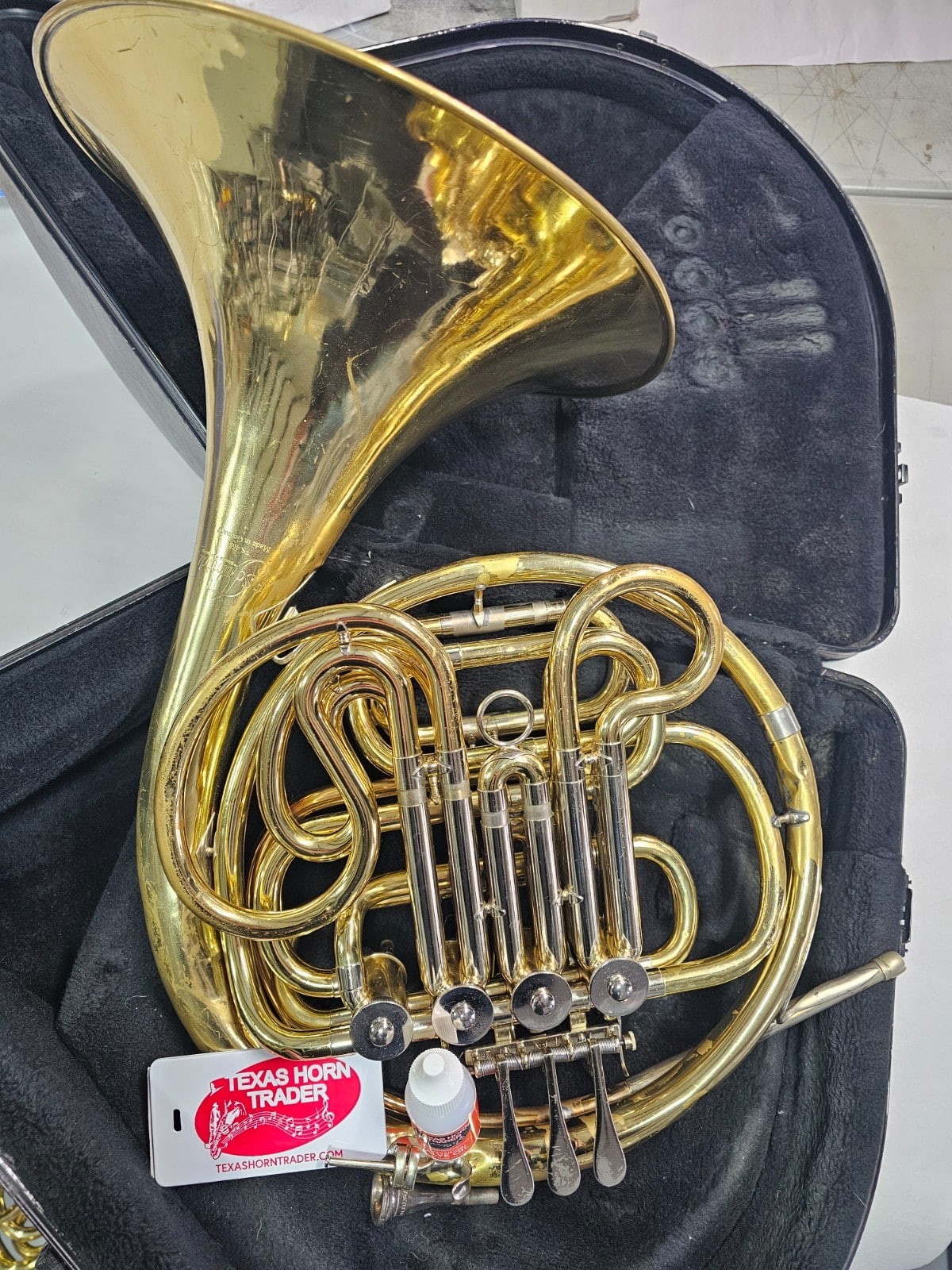 At Texas Horn Trader, we sell replacement parts! We also have instruments available for sale to repair. Buy these as is for repair. They come with a case that is poor but will work for shipping. We tested compression and it is still good. This horn is a good candidate for a flip horn.