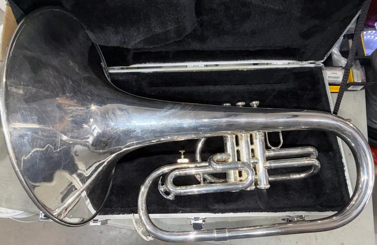 The King 1120 Silver F Marching French Baritone is a high-quality brass instrument designed specifically for marching bands. With its sleek silver color and durable construction, this baritone from the reputable King brand is sure to impress both musicians and audiences alike. Perfect for creating rich and powerful sound, this instrument is a must-have for any marching band or parade ensemble looking to elevate their performance.