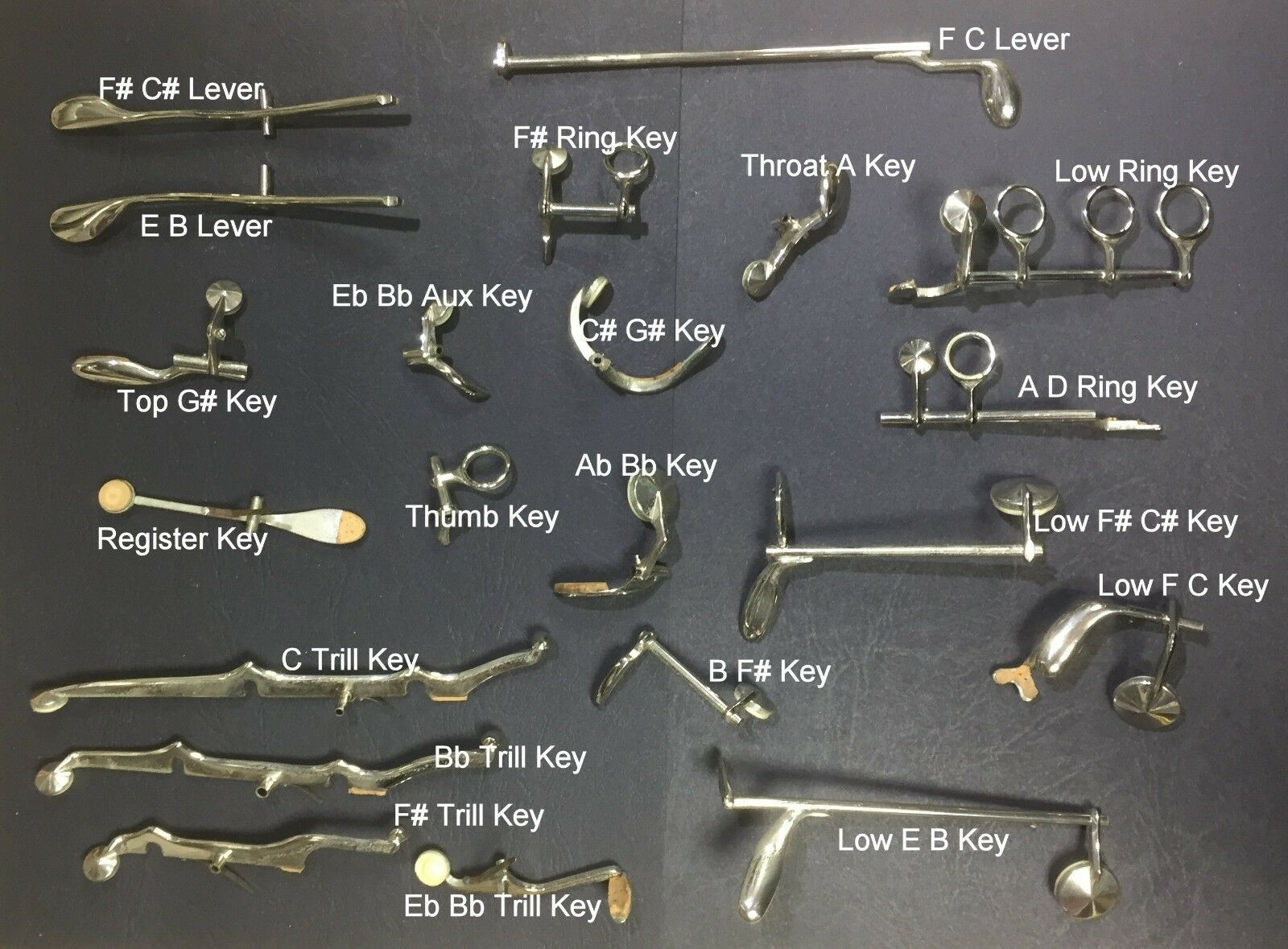These are used clarinet replacement parts. I have hundreds of parts in stock. Click to purchase the key or lever you want. If you don’t see what you need, just message me. I will try to find it. Most keys will need new pads. Sometimes these parts won’t fit because of age differences. Free returns! Send pictures when you can! It will help get the right part.***If you have a bass clarinet that needs a replacement part installed, contact me for details on repair prices!